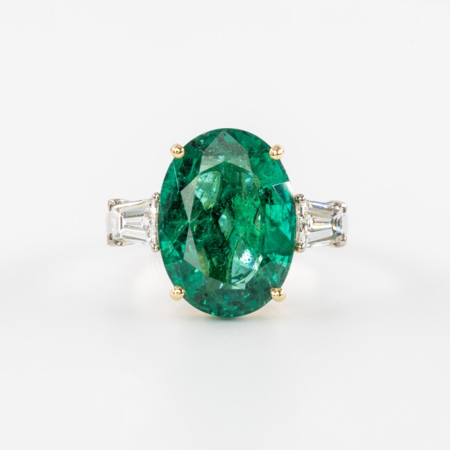 Bague bicolore avec émeraude ovale et diamants trapèze