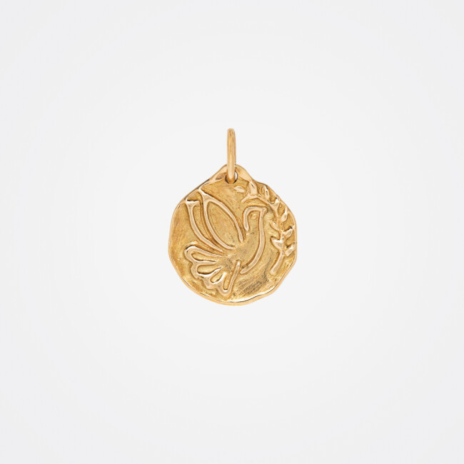 Médaille or jaune colombe au rameau