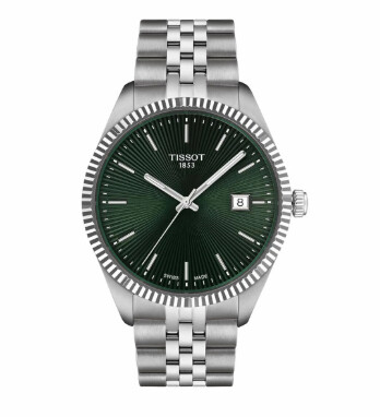 La collection Ballade de Tissot incarne l'horlogerie habillée suisse dans sa forme la plus accessible et raffinée. Ce modèle 40 mm affiche un cadran vert soleillé à texture rayonnante est une signature esthétique immédiatement reconnaissable. La lunette cannelée rappelle les codes de l'horlogerie classique haut-de-gamme, ajoutant une touche de sophistication traditionnelle. Les index et aiguilles argentés fins et polis garantissent une lisibilité parfaite dans un style épuré et lumineux.