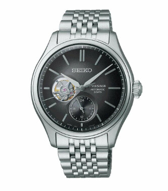 Cet modèle Seiko Presage séduit les amateurs de pièces élégantes par son ouverture "Coeur ouvert" qui dévoile le balancier à 9h, ainsi que le compteur 24h positionné à 6h, signatures horlogères raffinées imaginées et conçues par la manufacture japonaise.