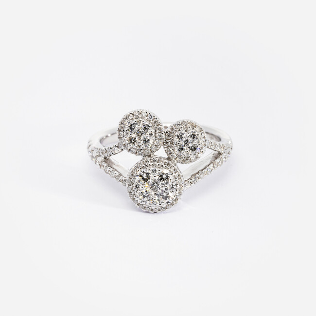 Bague en or blanc avec saphir bleu roi et halo de diamants