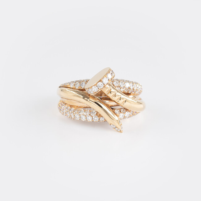 Inspiration Bague Féline or rose, diamants bruns & rubis