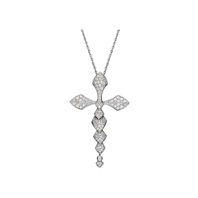 Python Mono Boucle d'oreille pendante Akillis croix Python en or blanc pavée de diamants