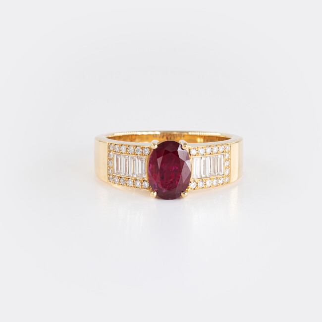 Louis XV Bague Louis XV or blanc, rubis & diamants