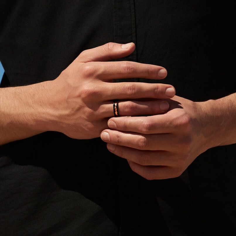 Cet anneau tournant révèle toute la maîtrise horlogère helvétique appliquée à la joaillerie. L'or rose 18 carats offre une teinte poudrée sublimant les 0,37 carat de diamants noirs sertis avec précision. Ces gemmes d'un noir profond créent un contraste saisissant, évoquant la modernité urbaine. Le système rotatif ingénieux permet aux deux lignes triangulaires de glisser indépendamment, procurant une sensation tactile addictive. Cette bague femme se porte quotidiennement, apportant une sophistication décontractée aux tenues contemporaines.