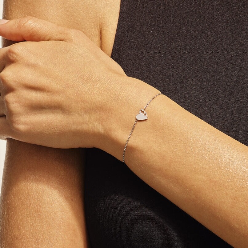 Ce bracelet se distingue par sa forme de cœur sur lequel est gravé un éclair ajouré. Un symbole d'amour revisité avec grâce et modernité.