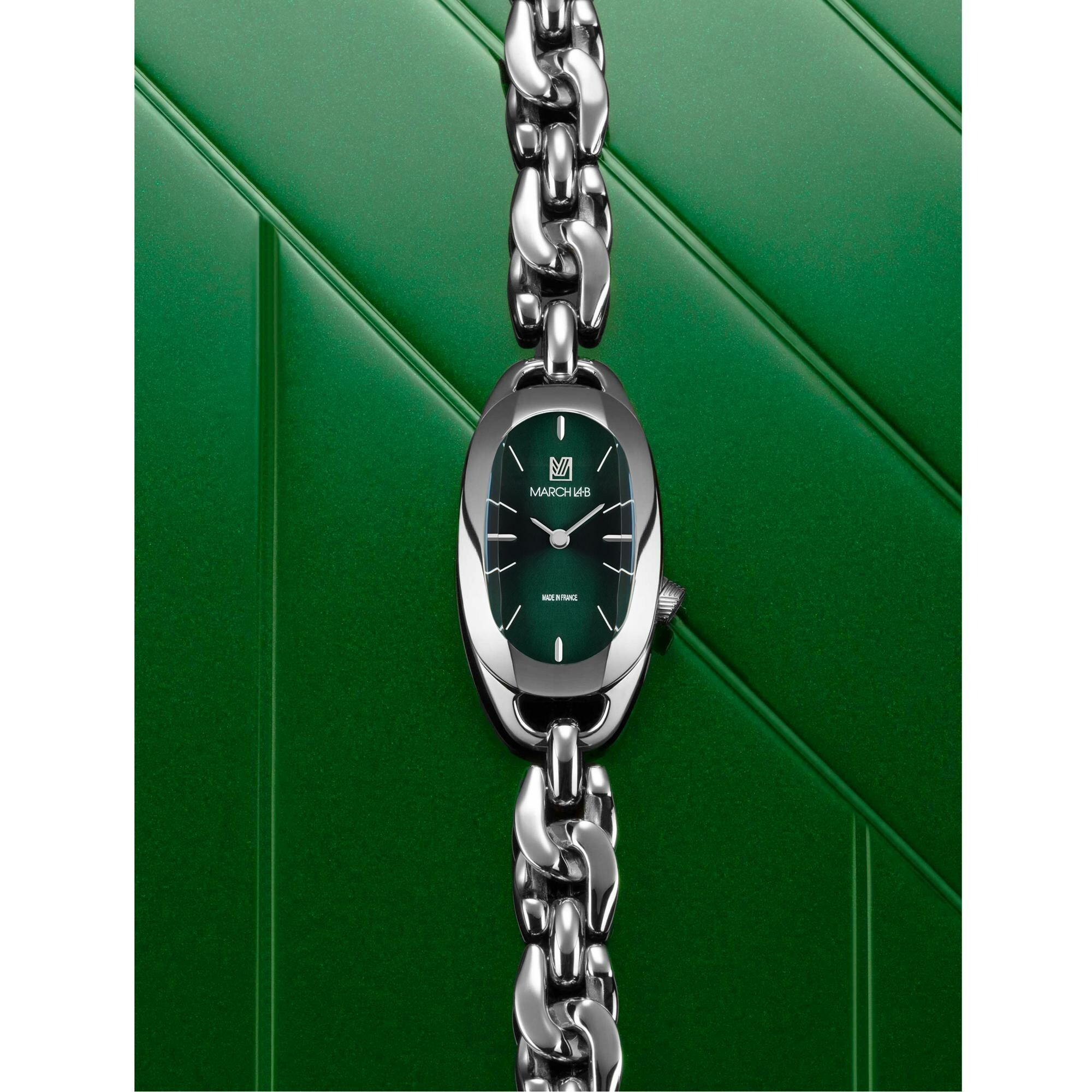 Oblongue Montre March LA.B OBLONGUE ELECTRIQUE 20 MM - FOREST - Gourmette Acier