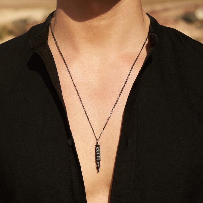 La collection Fatal Attraction d’Akillis exprime une esthétique radicale, entre séduction et tension. Ce pendentif Akillis incarne cette dualité avec une silhouette élancée inspirée d’un motif balistique stylisé, revisité dans une version sombre et contemporaine, signature forte de la maison.