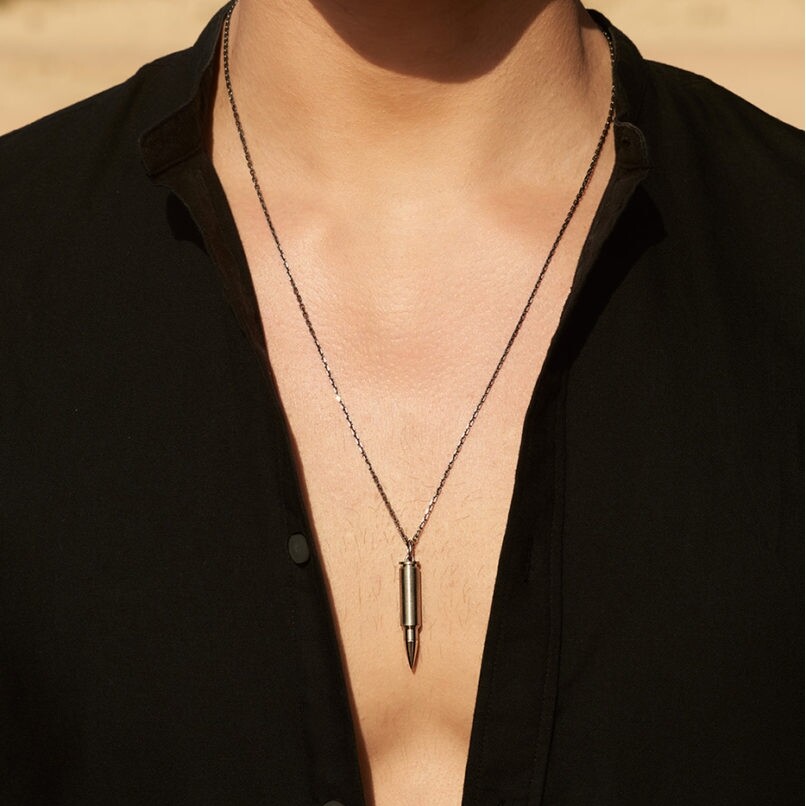 Le pendentif Akillis Fatal Attraction incarne l'ADN révolutionnaire de la maison française, défiant les codes traditionnels de la joaillerie depuis sa création. Cette pièce unisexe reprenant la symbolique de balle de revolver prolonge l'héritage audacieux d'Akillis, marque pionnière dans l'utilisation du titane en haute joaillerie. La collection Fatal Attraction puise son inspiration dans l'attraction magnétique des contraires, sublimant la dualité entre force brute et raffinement absolu.